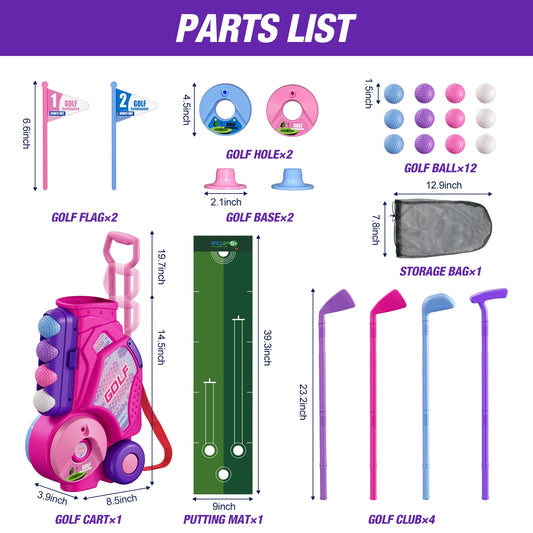 Toddler Golf Set for 3-6+ Years Old Boys Girls, Upgraded Golf Cart with Unique Shoulder Strap,Indoor and Outdoor Golf Toys Gifts
